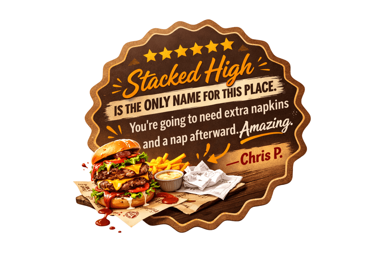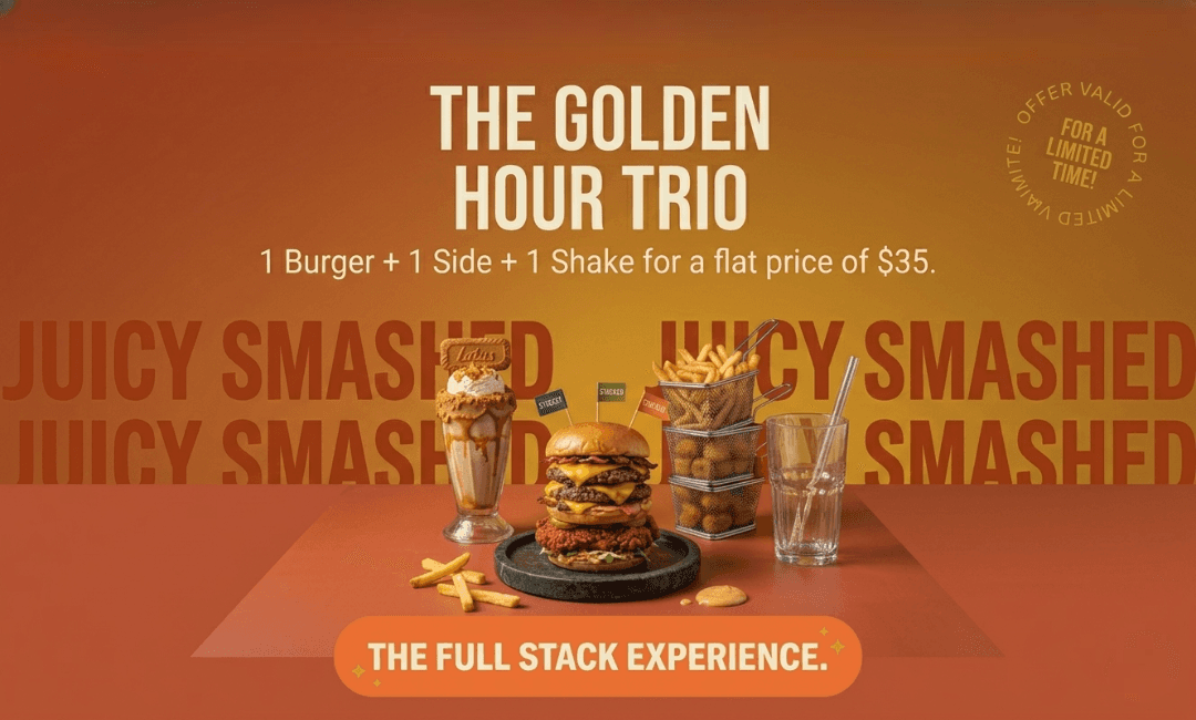 JUICY • CRAVE • SMASHED • FLAME • STACKED • JUICY • CRAVE • SMASHED • FLAME • STACKED